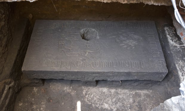 | La lastra tombale rinvenuta a Città del Messico vicino l'attuale Cattedrale della città (Foto: Eduardo Verdugo/Ap) |